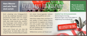 Clubhaus wieder unter Hans Maurer eröffnet Wir freuen uns Elena und Hans Maurer wieder an neuer & alter Wirkungsstätte zu begrüßen.